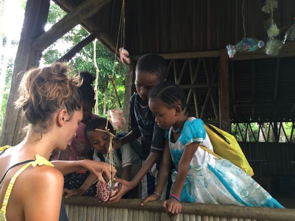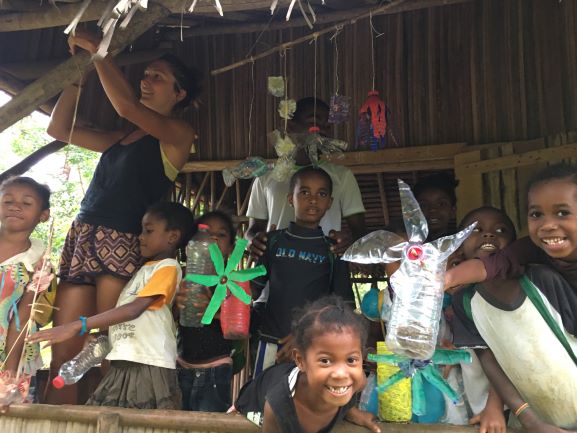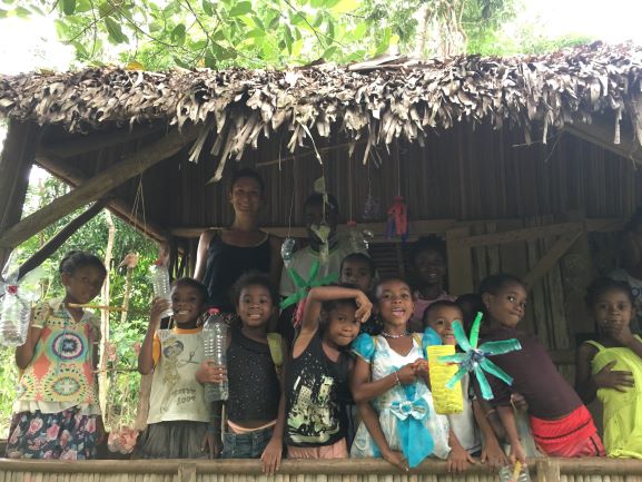 Elle est belle, elle est jeune et surtout elle est douée pour donner la visibilité. Naema a fait ses armes chez Emmaüs & va passer 9 mois dans une communauté de freaks au sommet d’une petite île toute verte, Nosy Komba, signifiant île aux lémuriens. Akiba c’est l’Amour d’un vaza avec une malgache au caractère hypra trempé, princesse rebelle, c’est une alliance rock n’roll entre 2 passionnés, celui qui se noit dans ses flots d’idées et celle possède la terre pour les réaliser. Akiba veut dire patrimoine en gasy, et le patrimoine c’est autant la terre saine que les têtes fertiles. Akiba s’est donné une triple mission: expérimenter avec pertinence la vision permacole, s’inscrire dans la veine d’un tourisme éco-authentique et développer les programmes d’une petite école sur le modèle Montessori. À 600m d’altitude, on se promène avec Rapace (qui n’est pas un volatile) dans les cultures de vanille, ylang, poivrier, cacaoyer; il a toujours une longueur d’avance, normal le jeune descend au village dès qu’il y a besoin d’une course ou deux et il peut se faire le trajet jusqu’à 2 fois par jour. Une personne “basique” met 2h à grimper…Redondantes les vues à couper le souffle, mais rien ne rebute ce champion de makitrail alors il est plutôt gentil de casser son rythme pour attendre que j’ai fini de me faire démonter par des escadrons de moustiquade invisible…